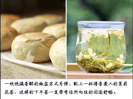 一塊飽滿香酥的椒鹽蘇式月餅,配上一杯清香襲人的茉莉花茶,這樣的下午茶一定帶有你所向往的閑適舒暢。